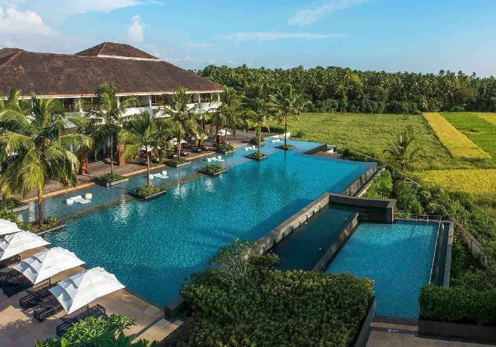 Alila Diwa Goa is a 5-star luxury resort situated at 48/10, Adao Waddo, Pacheco Vaddo, Majorda, Gansua, South Goa – 403713, operated as part of the Alila Hotels & Resorts brand under the Hyatt Hotels Corporation portfolio and established in 1996 as one of South Goa's most distinctively designed and enduringly beloved luxury properties. Taking its architectural influence from Indonesian and Balinese design sensibilities, guests discover high-beamed wooden ceilings, open-air courtyards, and water features, giving the hotel a serene, zen-like ambience that is further enhanced by well-manicured gardens filled with bamboo, palms, and flowering frangipani trees Booking.com — all set against the extraordinary backdrop of South Goa's emerald paddy fields. The property's 153 rooms and suites were designed with the indulgence of space and privacy in mind, featuring private terraces and balconies with pool, garden, or paddy field views that showcase the stunning surrounding natural landscape Resort Rio, with each room offering a king-size bed with memory foam mattress, private sit-out, stand-alone bathtub, walk-in wardrobe, separate workspace, minibar, and complimentary Wi-Fi. Room categories span Terrace Rooms (474 sq. ft.), Loft Rooms (538 sq. ft.), Family Suites (948 sq. ft.), Alila Suites (1,200 sq. ft.) with personal butler service, and Diwa Club Rooms offering exclusive private pool and lounge access. Dining is anchored by three signature venues and two bars: Spice Studio, celebrating the rich culinary traditions of India's southwest coastal regions of Kerala, Karnataka, and Goa; Vivo, an all-day diner overlooking the pool and surrounding paddy fields; Bistro at The Diwa Club serving all-day Mediterranean-influenced à la carte options; Edge, the poolside bar and lounge; and the Courtyard Bar, a speakeasy-inspired retro-themed cocktail destination specialising in house-infused spirits MakeMyTrip. Alila Diwa Goa has one of India's best infinity pools, along with a separate kids' pool, that overlooks lush green paddy fields and is one of the best spots to experience stunning sunsets in South Goa Ats Goa Arambol. Spa Alila offers personalised wellness treatments, a 24-hour gym, and a yoga studio overlooking lush greenery with free yoga sessions every Tuesday and Saturday Ats Goa Arambol. Additional facilities include Play Alila Kids' Club and Teen Zone, a mini-theatre, curated local destination experiences, banqueting with 2,137 sq. m. of event space, and a complimentary free shuttle service to Gonsua Beach for all guests Ats Goa Arambol. The resort is located 20 minutes from Dabolim International Airport and close to gorgeous beaches including Majorda Beach, Colva, and Benaulim Resort Rio. Starting from ₹15,999 per night, Alila Diwa Goa is one of South Goa's most complete, culturally immersive, and architecturally striking 5-star resort experiences.