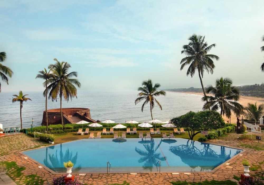 Taj Fort Aguada Resort & Spa, Goa is a 4-star rated luxury beachfront resort situated at Sinquerim Beach, Candolim, Bardez, North Goa – 403515, operated under The Indian Hotels Company Limited (IHCL) and established in 1974 as a landmark of extraordinary significance — India's first luxury beach resort, playing a pivotal role in elevating Goa's status from a serene coastal enclave to a premier global tourism destination, attracting international visitors and setting standards for high-end seaside hospitality www.Booked.net across five decades of continuous operation. The resort sprawls across a picturesque 42 acres and meanders into the ramparts of the 17th-century Portuguese coastal Fort Aguada, spreading on the seafront along the Sinquerim to Calangute beach stretch Tripadvisor — integrating living colonial heritage directly into its luxury hospitality experience in a manner that no other Goa property can replicate. The resort features 143 guest accommodations including sea-view rooms, suites, and private villas www.Booked.net, with room categories spanning Deluxe Sea View Rooms (29 sq. m.) with private sit-outs and panoramic Arabian Sea views, Luxury Garden View Rooms with private sit-outs nestled amid lush landscaped gardens, Luxury Sea View Suites with separate living rooms, private terraces ideal for intimate dining experiences under the Goan skies, and bathtubs overlooking the Arabian Sea Expedia, Aguada Cottages (37 sq. m.) with garden or sea views, Hermitage Villas (74 sq. m.) with private lawns offering sea or garden views, two-bedroom Sea View Hermitage Villas (153 sq. m.), Premium Sea View Suites (56 sq. m.) with terraces, and the three-bedroom Presidential Villa (209 sq. m.). Five on-site restaurants serve breakfast, lunch, dinner, kids' meals, and ocean views — including the iconic Italian restaurant Paper Moon, the Goan seafood specialist Morisco, the all-day dining venue, a poolside bar, and a nightclub Trip.com. The J Wellness Circle spa offers aromatherapy, body wraps, and facials, while the resort also features a 24-hour fitness centre, outdoor pool, archery, zip-lining, rock climbing, mini golf, and complimentary beach cabanas and sun loungers Trip.com. This property participates in EarthCheck — a programme that measures the property's environmental, community, cultural-heritage, and economic impact Trip.com, reflecting IHCL's verified commitment to sustainable luxury hospitality. Dabolim Airport is 39 km from the resort — approximately 1.5 hours by car — while Manohar International Airport is 37 km away and approximately 1 hour 15 minutes by road MakeMyTrip, with complimentary coach transfers offered at scheduled timings for all room categories. Starting from ₹24,599 per night, Taj Fort Aguada Resort & Spa, Goa is North Goa's most historically significant and internationally acclaimed luxury coastal resort.